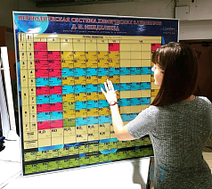 Стенд содержит полную периодическую систему химических элементов. Наглядная и тактильная информация продублирована точечным шрифтом по системе Брайля.