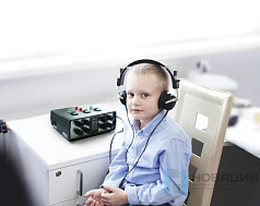 - Через наушники с подключенным усилителем пользователь слышит себя и специалиста. Звук подается чистый и глубокий.