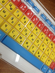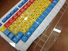 Клавиатура для людей с нарушениями моторики адаптирована под особенные потребности. Каждая кнопка заглублена во избежание нажатия нескольких соседних кнопок одновременно. Размеры цветных клавиш увеличены для удобства пользователя.