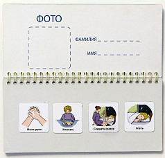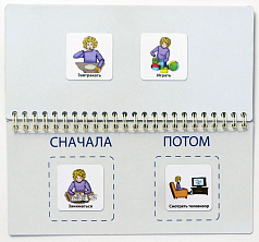 В комплекте блокнот из пяти магнитных страниц и пять магнитных карточек, которые крепятся на страницы. Набор разработан специально для детей с расстройствами аутистического спектра. Поможет детям спланировать распорядок своих дел, запомнить порядок действий и обучиться самостоятельности.