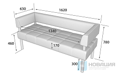 Диван рассчитан на 3-х человек. Прочная конструкция размещается на 4-х металлических опорах круглого сечения. Диван оснащен удобным прямоугольным сиденьем и эргономичной спинкой. Немаркая поверхность обивки легко очищается с помощью влажной ткани.