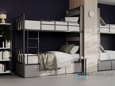 Стальная 2-ярусная кровать размещается в общежитиях и зонах отдыха муниципальных учреждений.