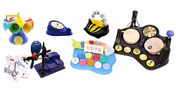 Наборы представлены красочными предметами с визуальными или звуковыми эффектами, вибрацией, функциями обучения счету и основам грамотности.