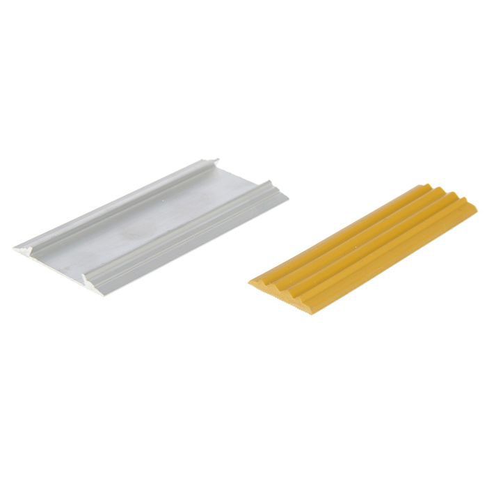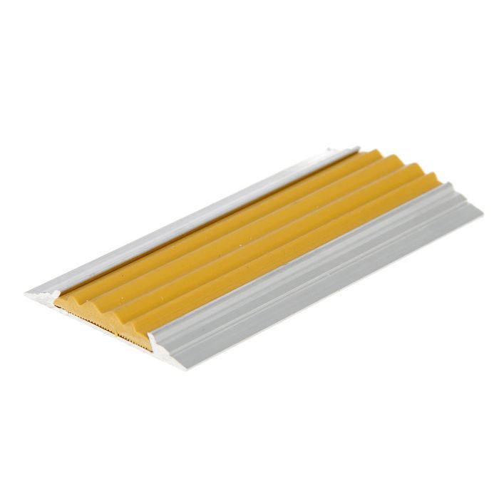 Противоскользящая полоса для монтажа специальных покрытий помогает безопасно перемещаться маломобильным гражданам. Желтая вставка из резины привлекает внимание издалека и хорошо различается в сумерках.