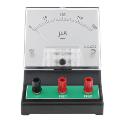 Назначение: обнаружение малых величин тока, измерение силы переменного и постоянного тока, напряжения. Оборудование подключается к цепи через клеммы на лицевой стороне (черная клемма – минус). Располагает шкалой с двойной оцифровкой. Разметка от 0 до 10 применяется в режиме амперметра-вольтметра, от -100 до +100 в режиме гальванометра (2-я клемма).