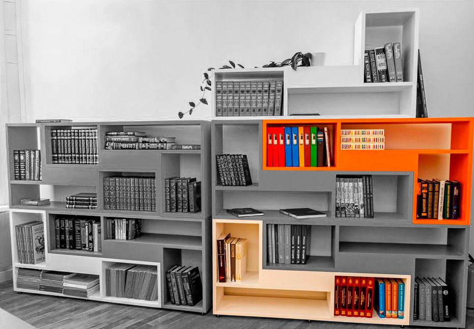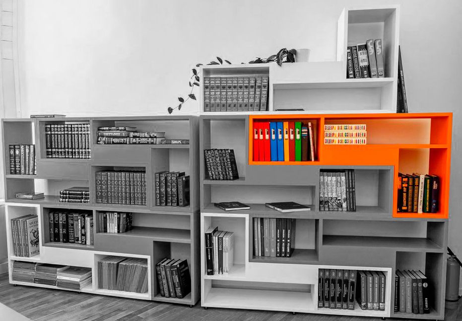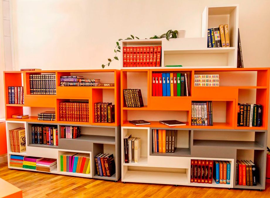 Модульный стеллаж подойдет для оснащения современной библиотеки, класса в школе, ИБЦ, коворкинга или офиса.