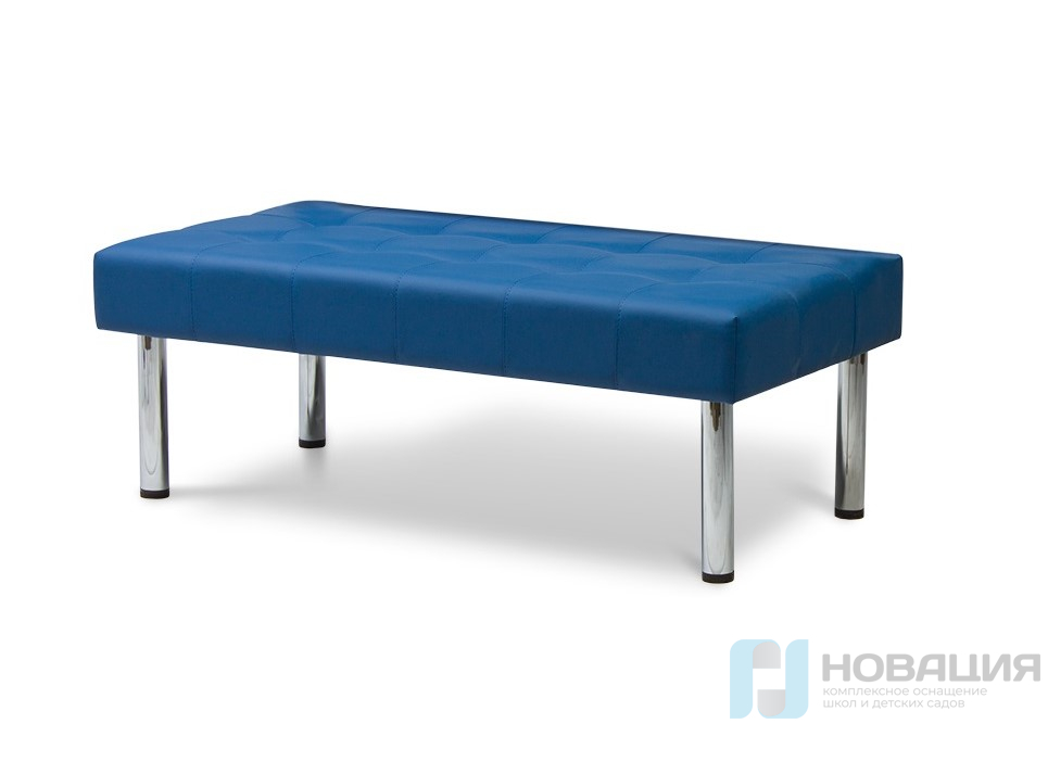 Вместительная и устойчивая конструкция с прямоугольным сиденьем без спинки и подлокотников стоит на 4 хромированных опорах круглого сечения.