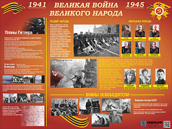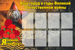 Тематический баннер с изображением символов военного времени предназначен для размещения в школах и других муниципальных учреждениях.