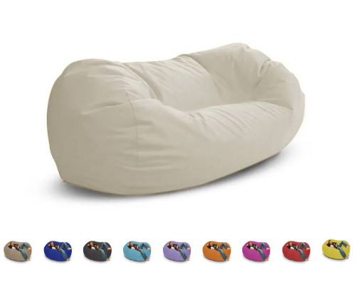 Диван для зоны отдыха покрыт износостойким велюром. Чехол снимается перед стиркой. Бескаркасная мебель позволяет телу принять любое положение. Наполнитель сопровождается сертификатом качества. Внутренний мешок оснащен застежкой-молнией.