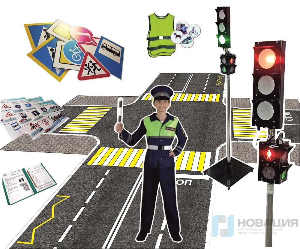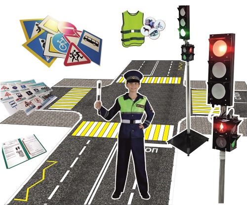 Позволяет изучить дорожную разметку, сигналы светофоров дорожного и пешеходного, правила поведения рядом с дорогой и перехода по пешеходной зебре, а также изучить основные дорожные знаки. Режимы светофора переключаются при помощи пульта, работают в 3-х режимах: ручном, автоматическом и ночном. Высота светофора в сборе 1,75м.