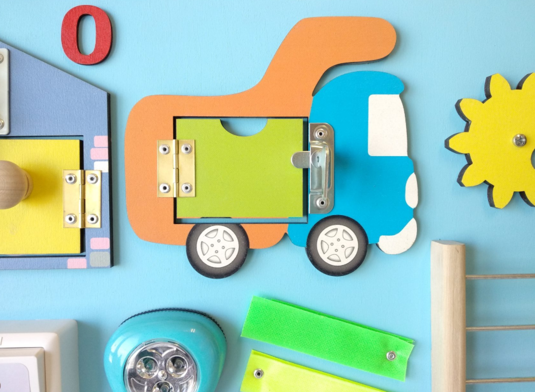 Оформление развивающей доски привлекает внимание ребенка и располагает к игре.