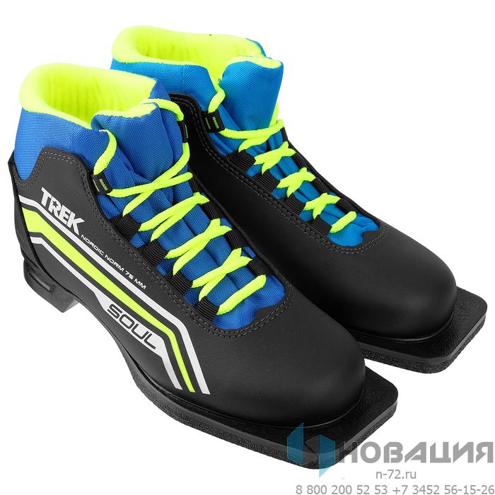 Черные ботинки для классического хода украшены цветными элементами и логотипом, подходят для лыжных креплений NN75. Обувь на клеевой подошве, с мягким кантом и языком, оснащается влаго- и ветрозащитной пропиткой. Трехслойный внутренний материал сохраняет тепло.