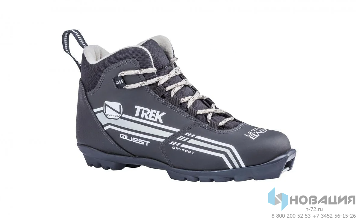 Лыжные ботинки на шнуровке, с мягким кантом и языком, поставляются в сером цвете. Обувь c влаго- и ветрозащитной пропиткой украшена логотипом. Ботинки на клеевой подошве подходят для креплений NNN. Трехслойный внутренний материал сохраняет тепло, носковая часть утеплена ворсином.