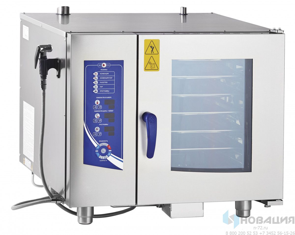 Пароконвектомат бойлерного типа предназначен для приготовления различных блюд методом обработки паром и горячим воздухом по отдельности или комбинированно. Способ образования пара — парогенератор. Оптимально подойдет для использования на кухне в ДОУ, школе, общественной столовой и т.д.