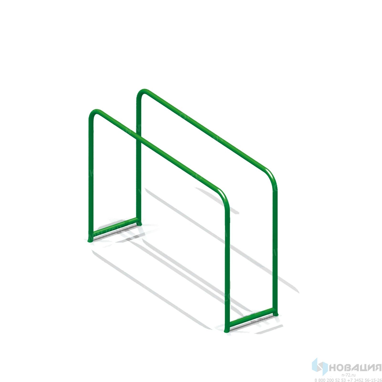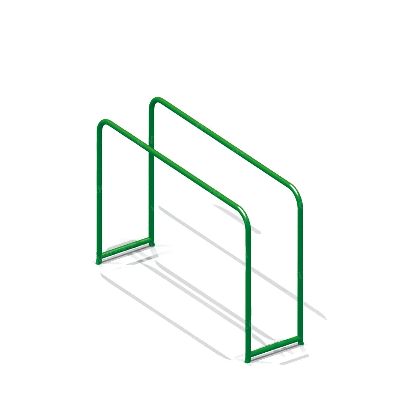 Конструкция состоит из двух "П"-образных стоек, укрепленных снизу двумя поперечными перекладинами. Концы труб закрыты во избежание травм, углы стоек скругляются.