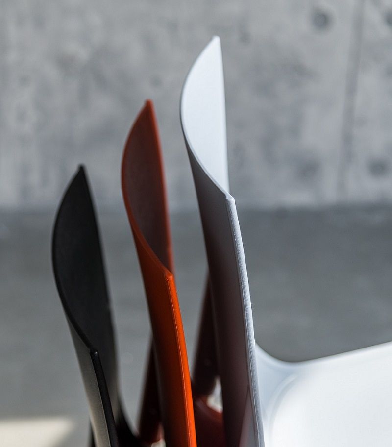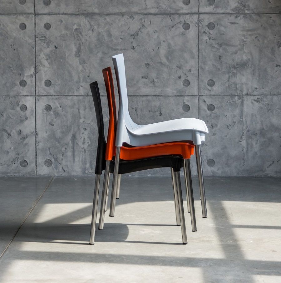 Благодаря специальным заглушкам ножки стула не скользят и не царапают напольное покрытие. Лицевая поверхность сидения и спинки имеет декоративную текстуру, данный вид мебели запоминается характерной плавностью линий. Эстетичные яркие цвета помогают оживить изящный силуэт и придать обстановке оптимистичный и нарядный вид.