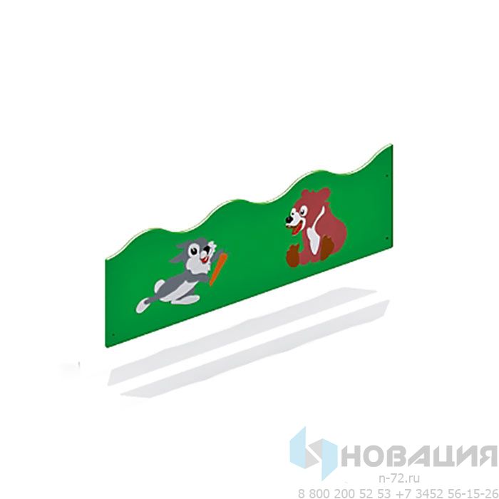Панель выполняется из влагостойкой фанеры не ниже 1 сорта, покрывается 2-компонентной краской. На зеленый фон нанесены изображения лесных зверей.