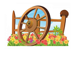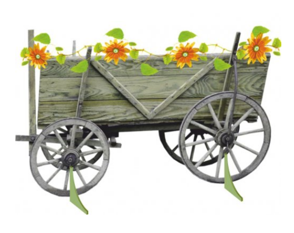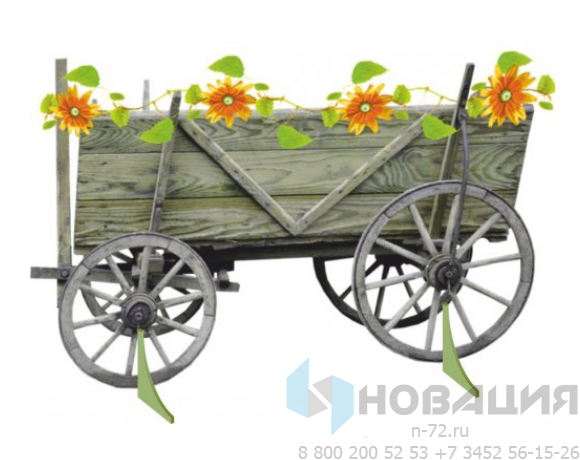 Живописная панель из МДФ стоит 2-х опорах. Изображение деревянной тележки, увитой подсолнухами, украсит сюжет народной сказки. Гладкий материал декорации не оставляет заноз и служит долгие годы.