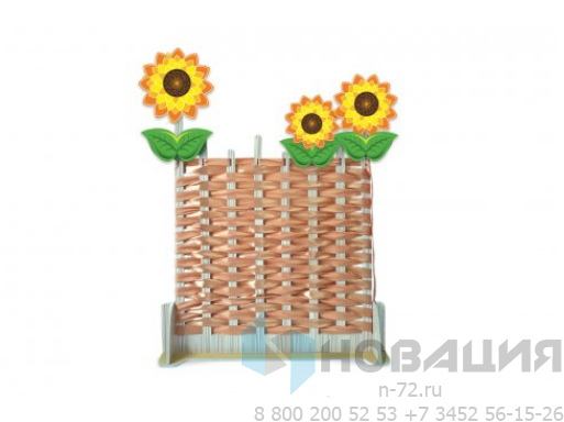 Декоративный забор, украшенный цветками подсолнуха используется для проведения детский спектаклей и постановок в ДОУ.