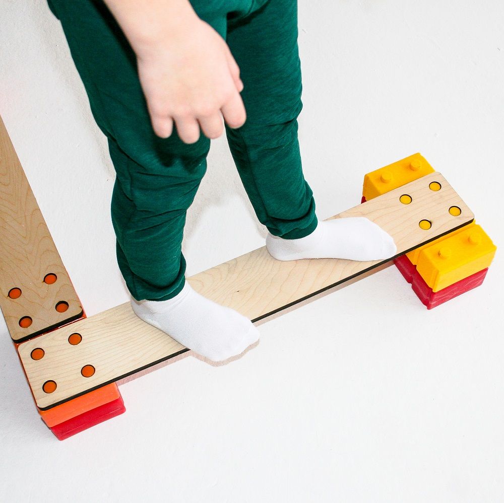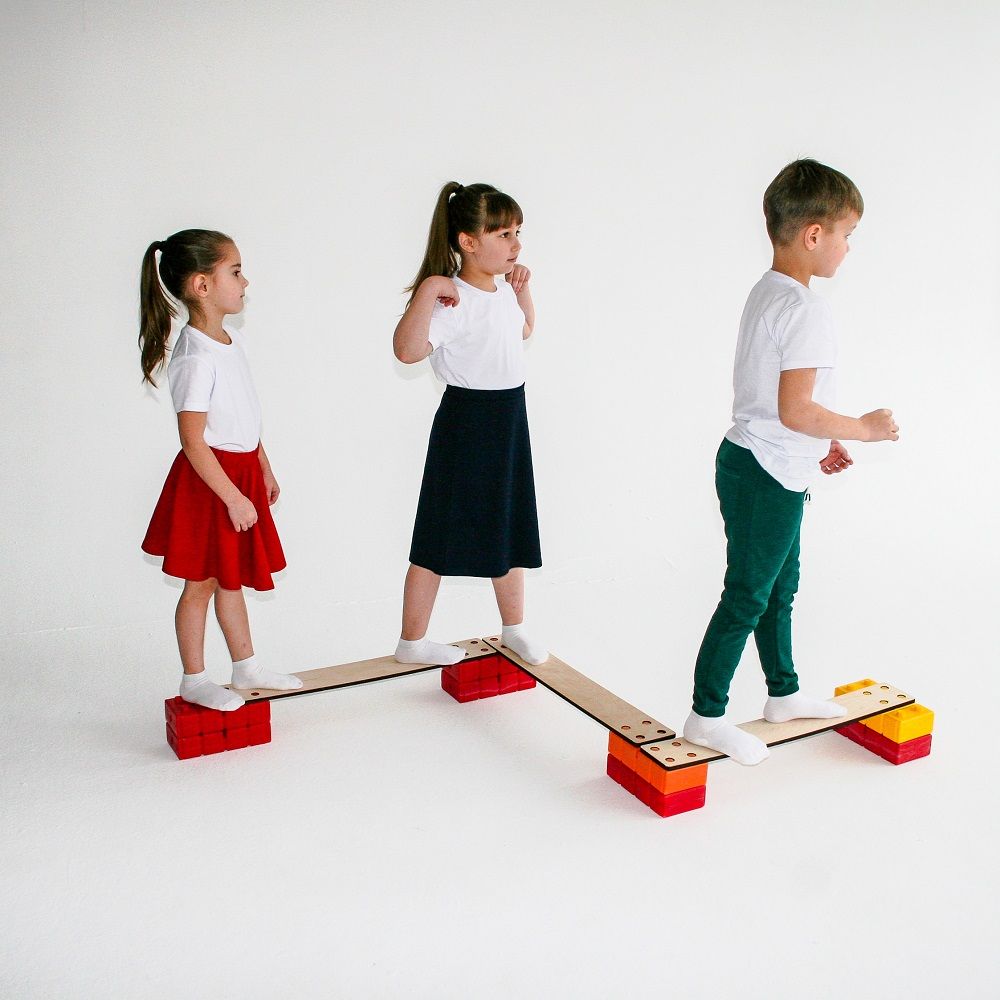 Компактная конструкция позволяет развивать чувство равновесия, тренировать глазомер, укреплять мышцы ног. Опоры оснащаются специальными отверстиями для засыпания песка или соли.