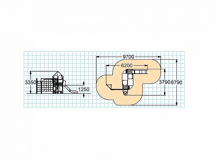 Размеры (ШхГхВ): 6600х3630х3350 мм, h площадок 1250 и 1530 мм.