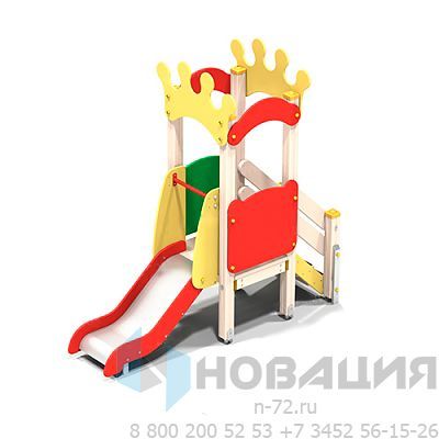 - горка со скатом (нержавеющая сталь, 1.5 мм), фанерными бортиками (h 100 мм), защитной секцией, перекладиной (d 33 мм),
