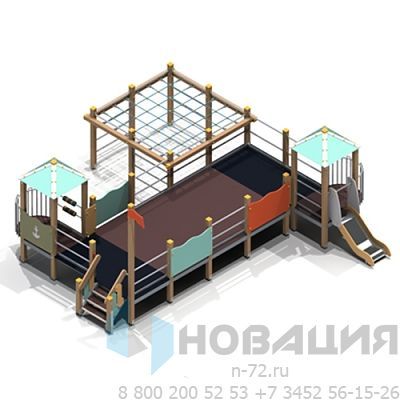Комплекс для отдыха сборно-разборный. Сетка устанавливается горизонтально. На столбе закрепляется фанерный флаг. Поверхности площадок и ступеней не скользят.