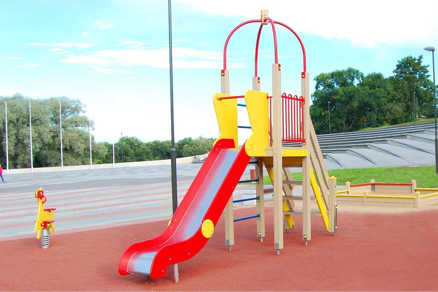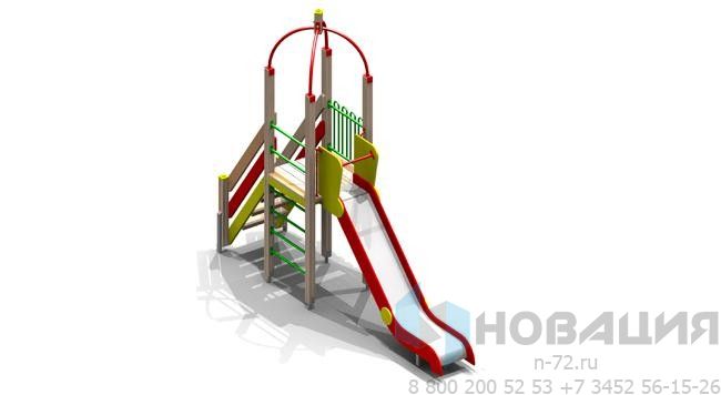 - горка из нержавеющей стали толщиной 1.5 мм, с фанерными бортами (h 150 мм) и защитной секцией, перекладиной,