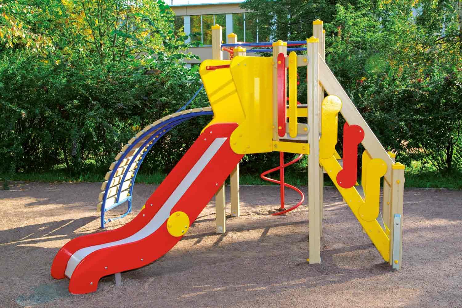 - горка с бортами и защитной секцией из фанеры, с перекладиной и стальным нержавеющим скатом,
