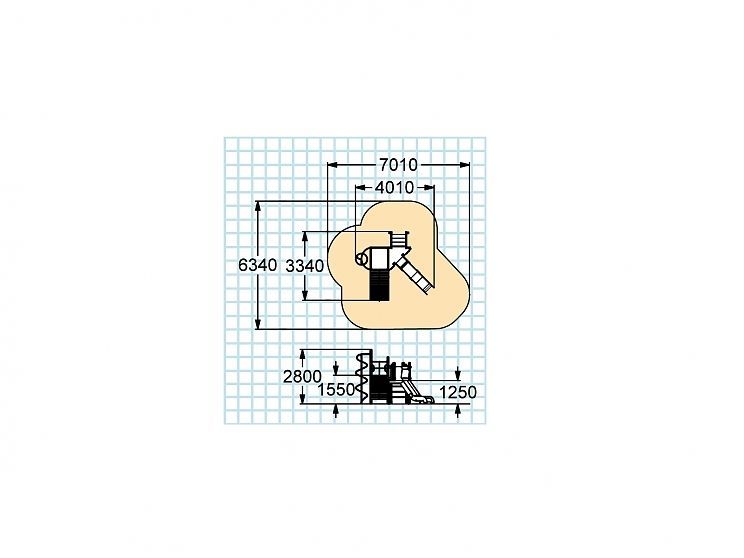 Размеры (ШхГхВ): 4000х3600х2780 мм, h площадок 1230 и 1530 мм.