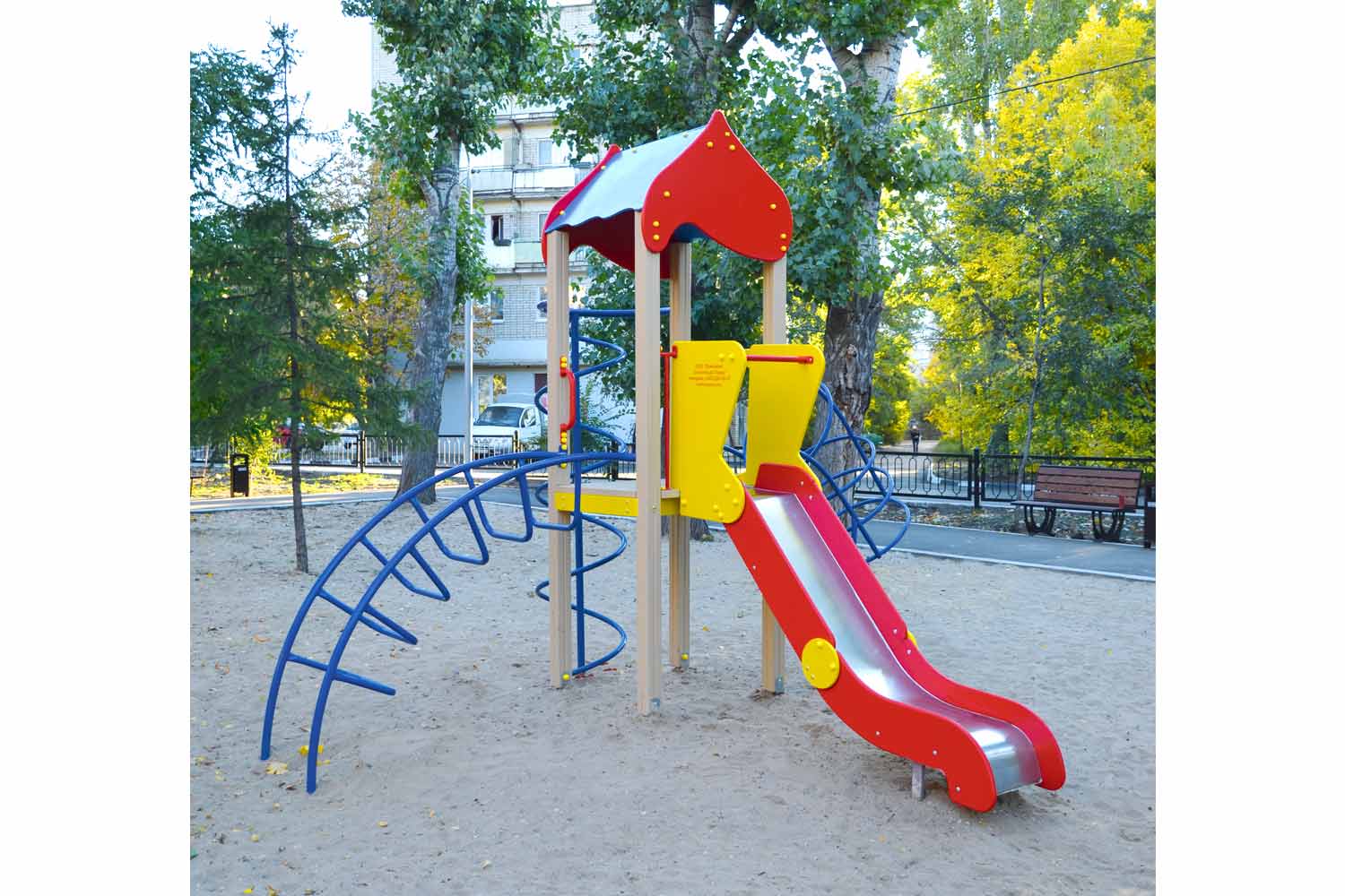 - нержавеющая горка: скат из стали, с фанерными бортиками и защитной перекладиной (d 33 мм),