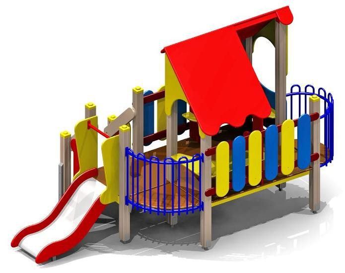В составе комплекса: башня, полубашня, 2 балкона, ограждения, перегородки, поручни, лестница, горка.