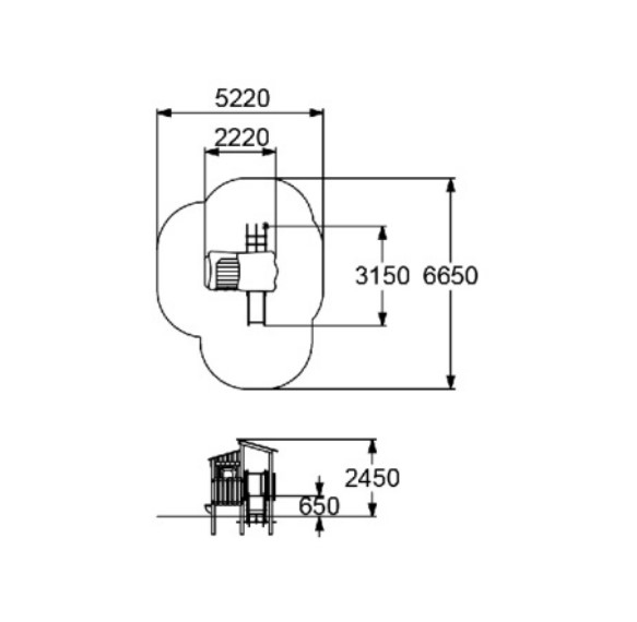 Размеры (ШхГхВ): 3150х2220х2450 мм, h горки 650 мм.