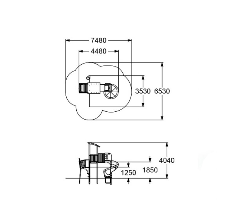 Размеры (ШхГхВ): 4480х3530х4040 мм, h горки 1850 мм.