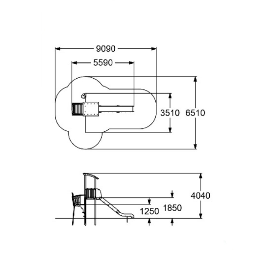 Размеры (ШхГхВ): 5590х3510х4040 мм, h горки 1850 мм.