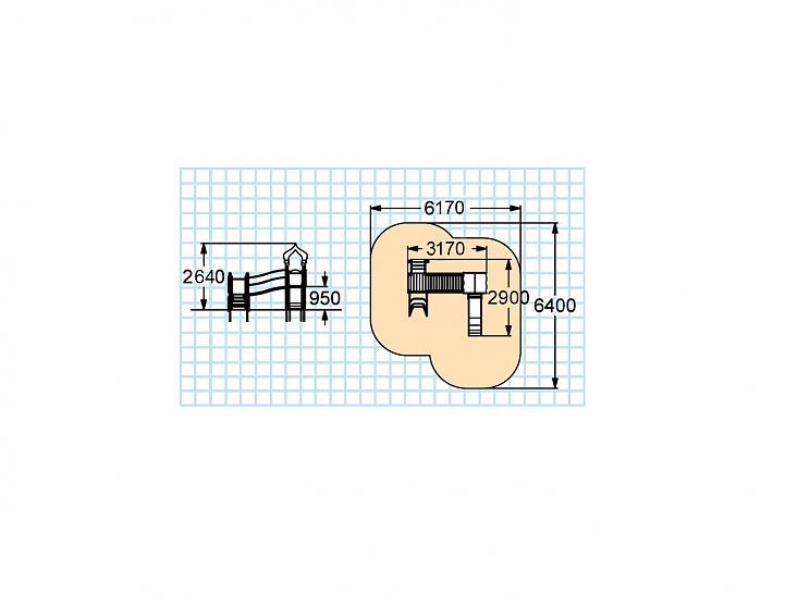 Размер: 3170х2900х2640 мм. Высота площадок 650 мм и 950 мм.