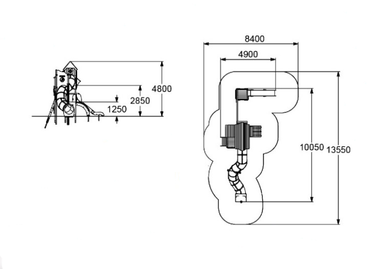 Размеры (ШхГхВ): 10050х4900х4800 мм, h горок 1250 и 2850 мм.