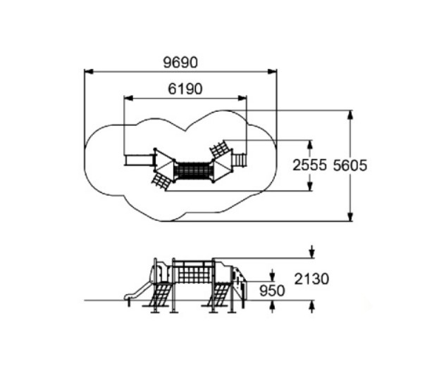 Для всепогодной игровой зоны потребуется участок размером 9690х5606 мм возле ДОУ или школы.