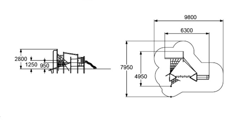 Для всепогодного комплекса нужно выделить свободное пространство (9800х7950 мм) рядом с детским садом или школой.