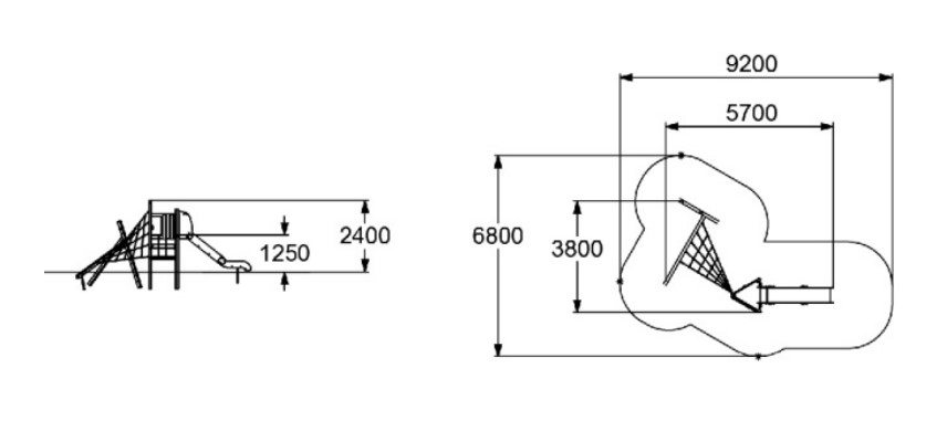 Для монтажа игровой зоны возле ДОУ или школы потребуется свободное пространство размером 9200х6800 мм.