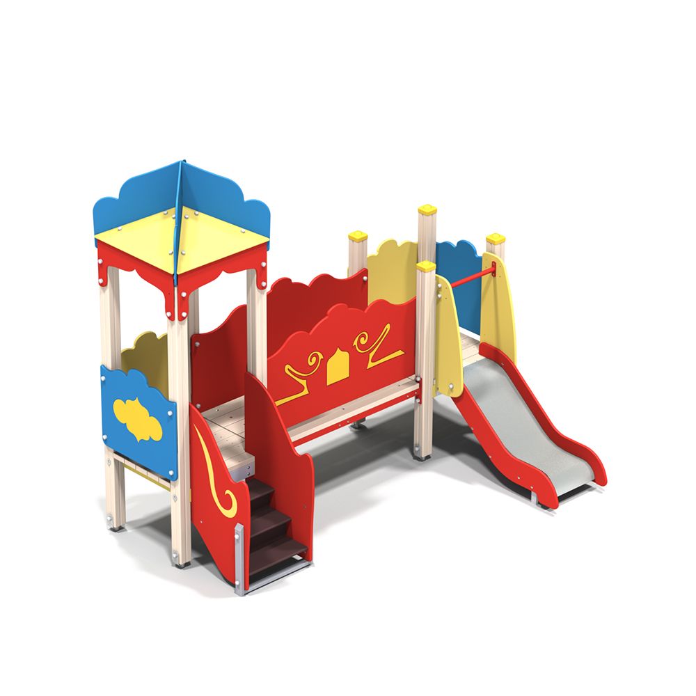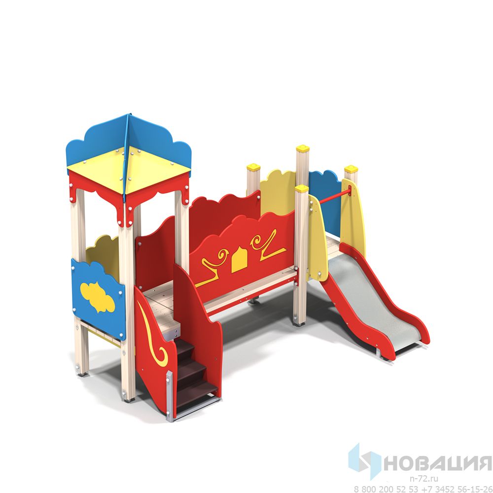 - горка (нержавеющая сталь толщиной 1.5 мм) с фанерными бортами (h 100 мм) и защитной секцией, перекладиной (d 33 мм).