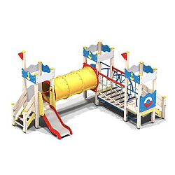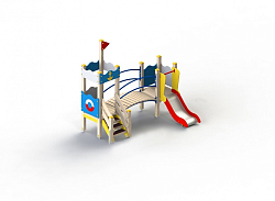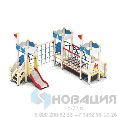 В составе комплекса: 3 башни, подвесной мост, горка, сетка для лазания, перекладины, 2 лестницы, наклонная лиана, ограждения.