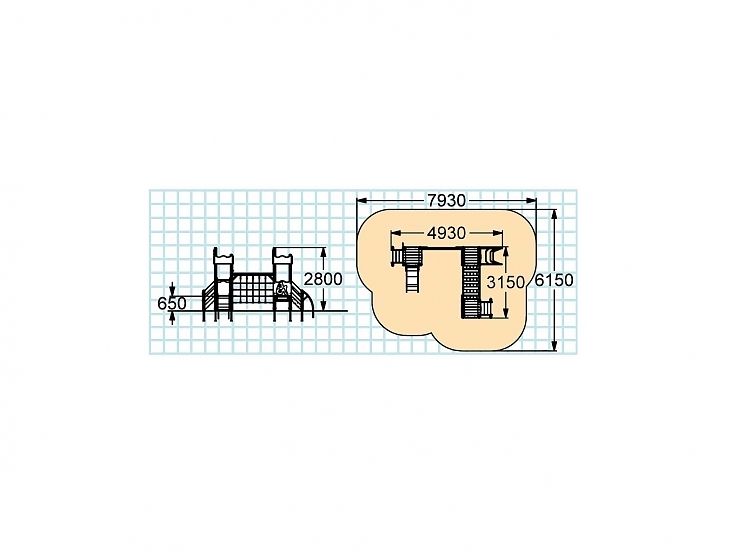 Размер: 4930х3150х2800 мм. Высота площадок 650 мм.