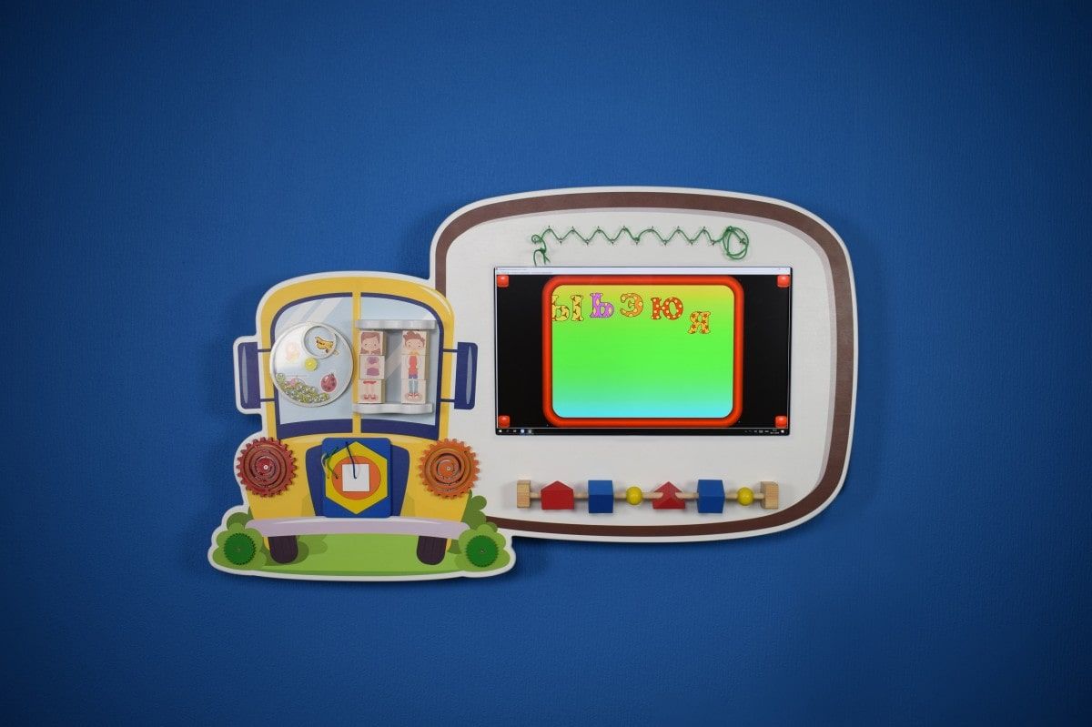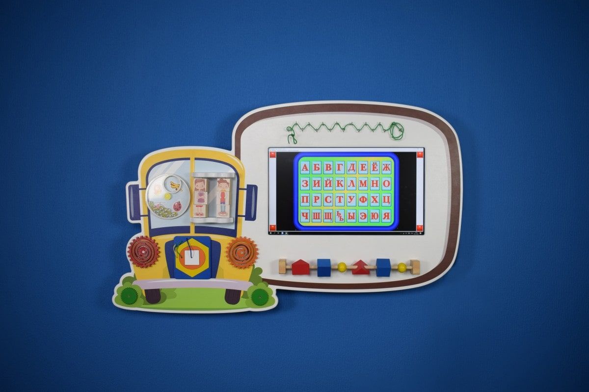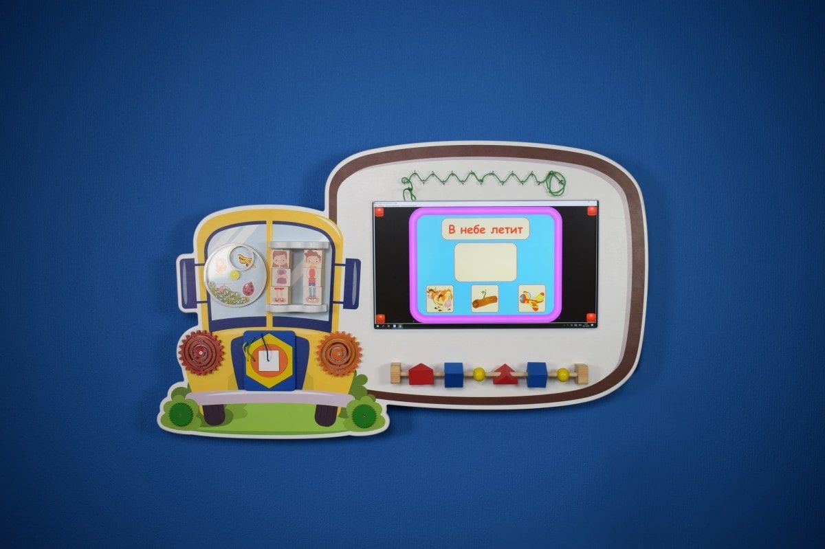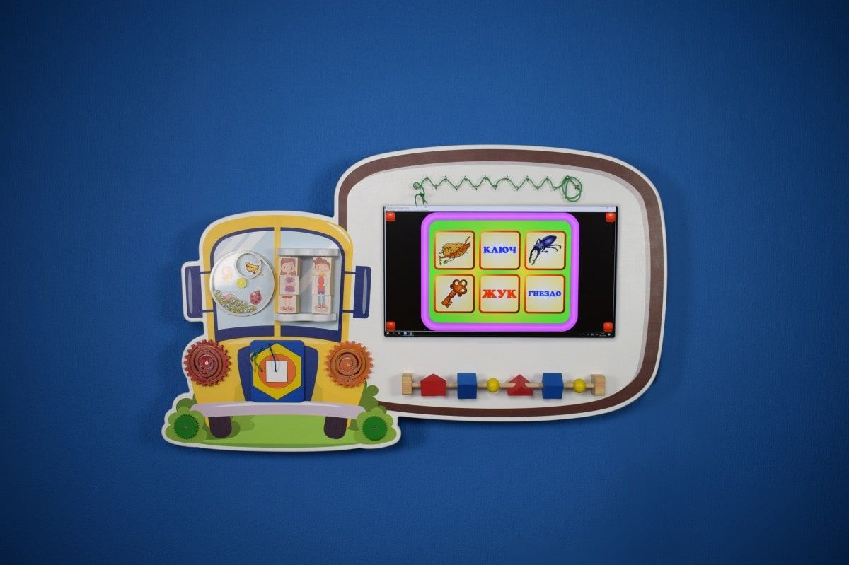 Вместе с интерактивной сенсорной панелью используется бизиборд для мелкой моторики.