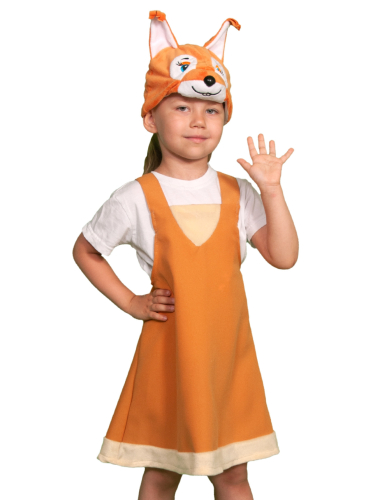 Карнавальный костюм для девочки состоит из сарафана с небольшим хвостом сзади и головного убора в виде головы белки с ушками. Бретели сарафана регулируются. Выполнен из плюшевой ткани.