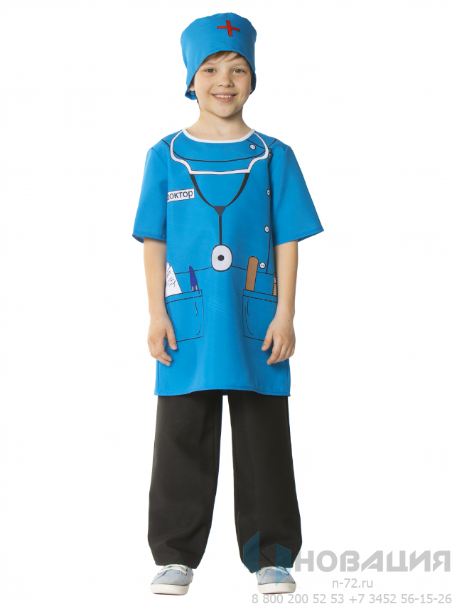 Универсальный костюм Доктора подойдет как мальчикам, так и девочкам. Может использоваться в ДОУ и начальной школе при проведении новогодних утренников, профориентационных мероприятий, и театральных постановок.
