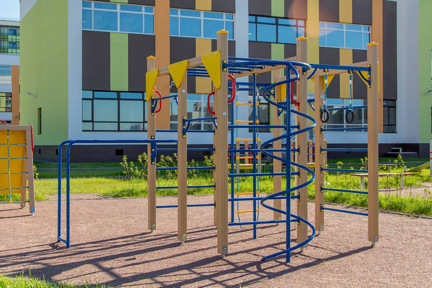 Уличный комплекс для гимнастических занятий размещается на территории школы.