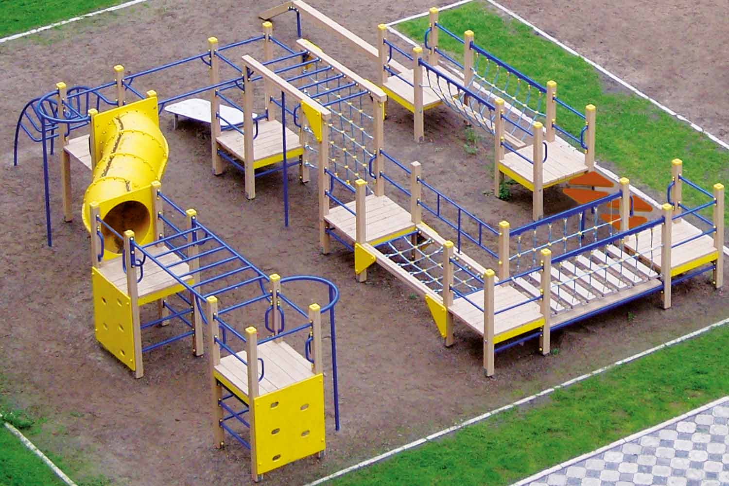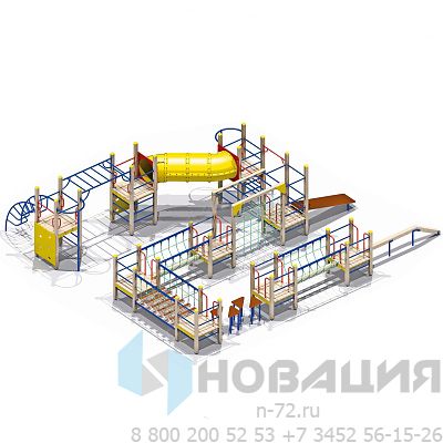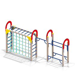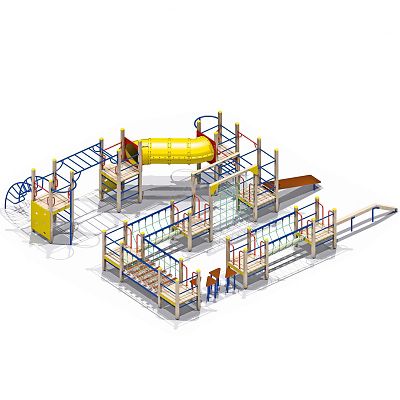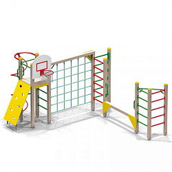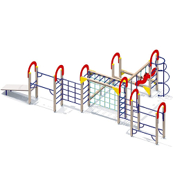 В составе комплекса: 9 башен, тоннельный переход, рукоход, шведские стенки, альпинистские стенки с прорезями, наклонная лиана, вертикальные лестницы для лазания, гимнастическая скамья, бум-бревно, подвесной мост, подвесной бум, переход в виде переправы.
