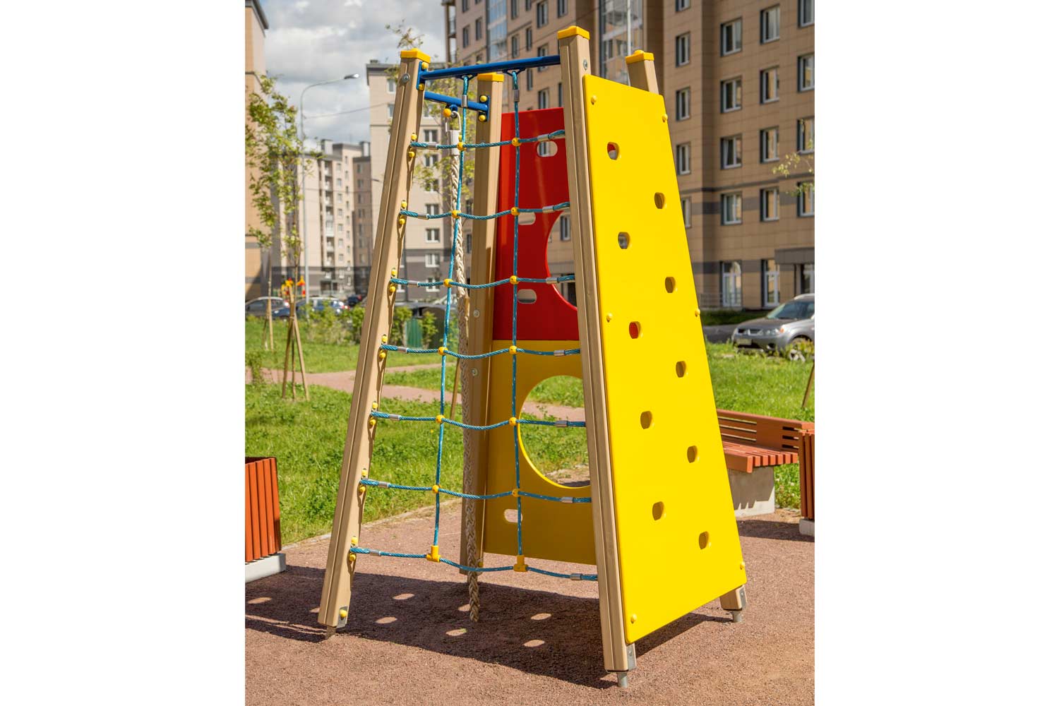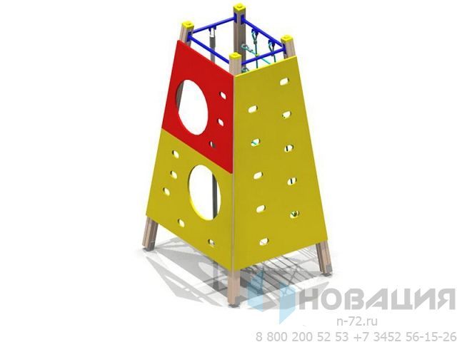 Элементы составляют композицию в виде усеченной пирамиды. Столбы устанавливаются под наклоном к центру, в верхней части соединяются балками. Канат, сетка и альпинистские стенки позволяют выполнять упражнения на скорость, гибкость и выносливость. Детали устойчивы к воздействию осадков.