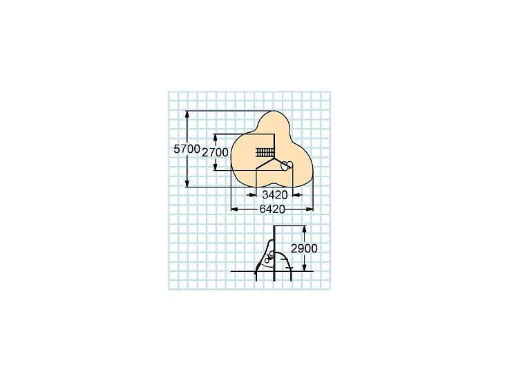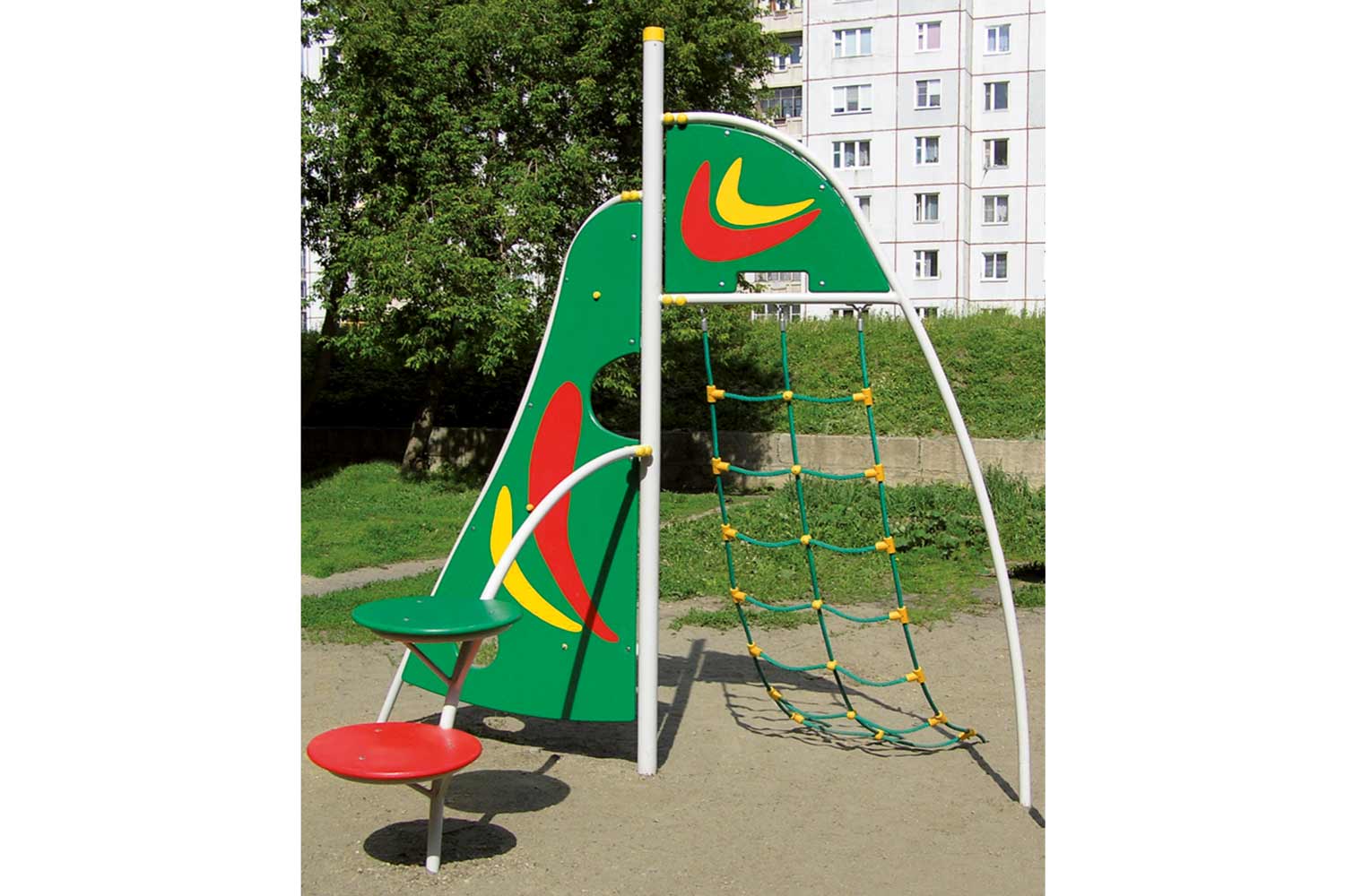 В составе комплекса: столб, альпинистская стенка с зацепами, полипропиленовая сетка для лазания, дуга со ступенями.